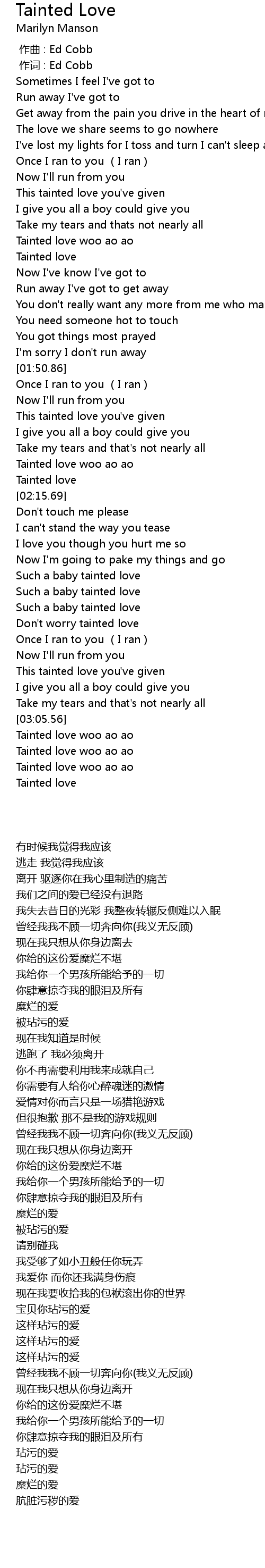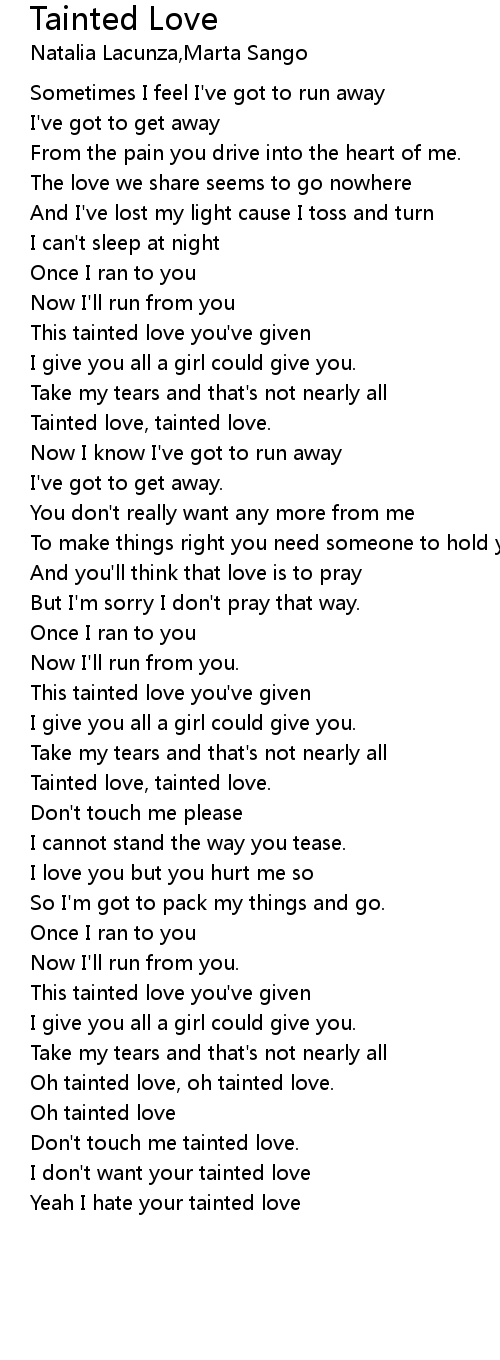 Your Tainted Love Lyrics Deutsch pix are be had in this website. Tainted Love Lyrics Deutsch are a subject that is being searched for and appreciated by netizens these days. You can Save the Tainted Love Lyrics Deutsch here. Download all royalty-free picture.